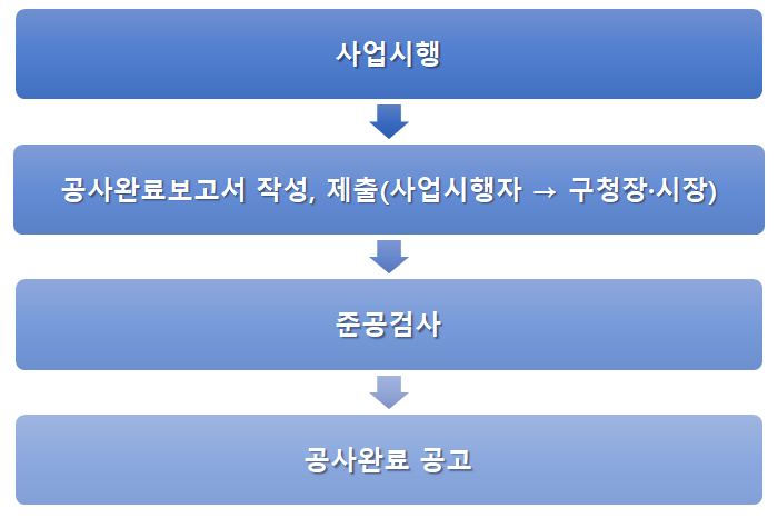 답변사업시행자는 구청장에게 준공인가 신청시 준공인가 신청서에 건축물·정비기반시설 및 공동이용시설 등의 설치내역서, 공사 감리자의 의견서 등을 첨부하여 제출하여야 합니다.